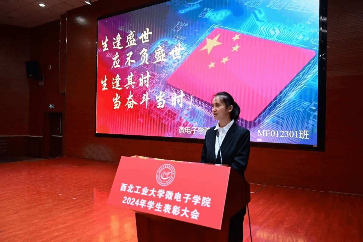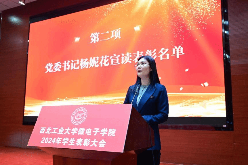 杨妮花宣读了2024年学生表彰名单,同时激励同学们向榜样学习,肩负使命、追求卓越,为实现学校“天下工大、世界三航”远景目标贡献青春力量。