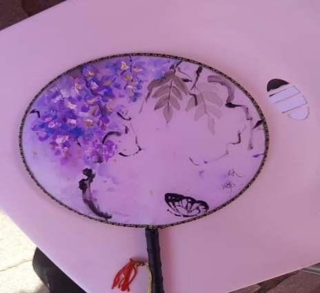 传统手作融合科技元素,展现学科特色 活动现场,同学们将微电子学科特色融入手作设计:在涂鸦帆布袋上,既有草木渲染的“春”字,也有精密芯片的科技图案,传统水墨与电路线条交织,展现艺术巧思。纸扇创作区,素白扇面被泼墨般的色彩晕染成流动的星河。