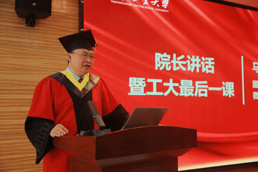 院长马炳和在“工大最后一课”中,对毕业生们四年来取得的成绩表示了肯定,同时提出四点期望:要胸怀家国,在核心技术攻关等领域勇担使命;要敢为人先,以创新思维突破技术瓶颈;要践行“公诚勇毅”校训与“三实一新”校风,以严谨作风铸就“中国芯”;要开放协同,以全球视野推动行业共赢。最后寄语毕业生,母校永远是同学们的坚强后盾,期待同学们以青春之力书写时代华章。