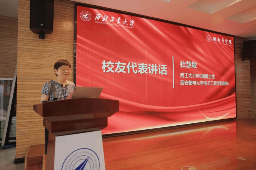 学校2000届博士毕业生、西安邮电大学电子工程学院、集成电路学院院长杜慧敏教授作为校友代表讲话。她分享了在西工大的求学经历和在集成电路领域深耕的感悟,生动阐释了“公诚勇毅”“三实一新”校训校风的指引,鼓励学弟学妹们保持热情,深耕专业,锐意创新。