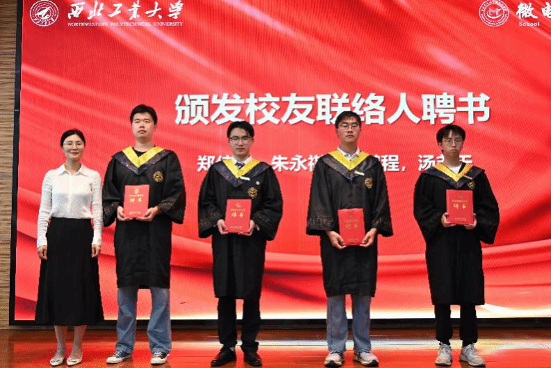典礼上,学院聘任郑佳伟、朱永祺、孙鹏程、汤尧天四位班级学生代表担任校友联络人。学院党委书记杨妮花为其颁发聘书,期望他们成为连接母校与校友的桥梁,传承西工大精神。