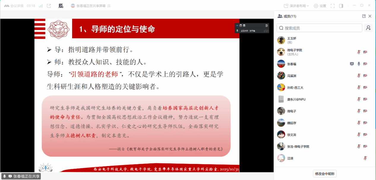 组织召开2025年导师培训会。会议采用线上线下相结合的方式进行,邀请西安电子科技大学太阳城网络赌博平台